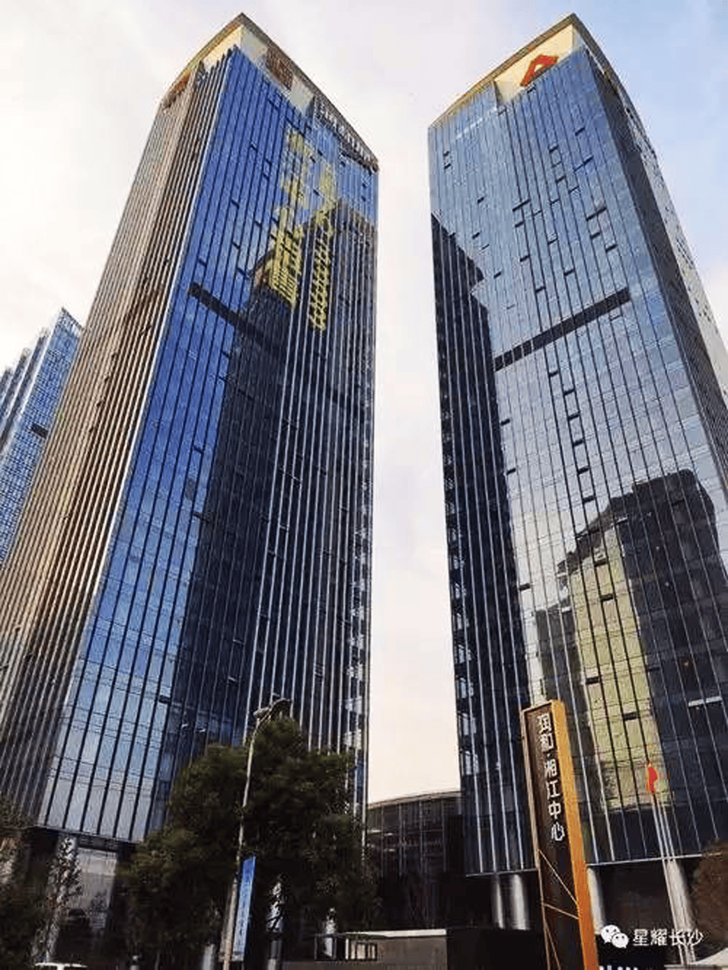 Twin 34 story towers at the edge of the Xiangjiang River in the new CBD.